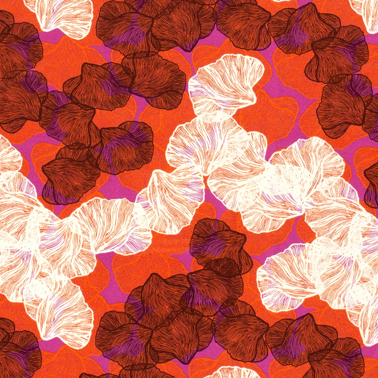 Ett tyg som en blomstrande sommarträdgård: På en intensivt fuchsialila botten dansar otaliga små blomblad i mjuka rosa-, vita- och rosa nyanser. Den livfulla, samtidigt feminina designen känns lekfull och modern och lyfter varje sömnadsprojekt på ett imponerande sätt.