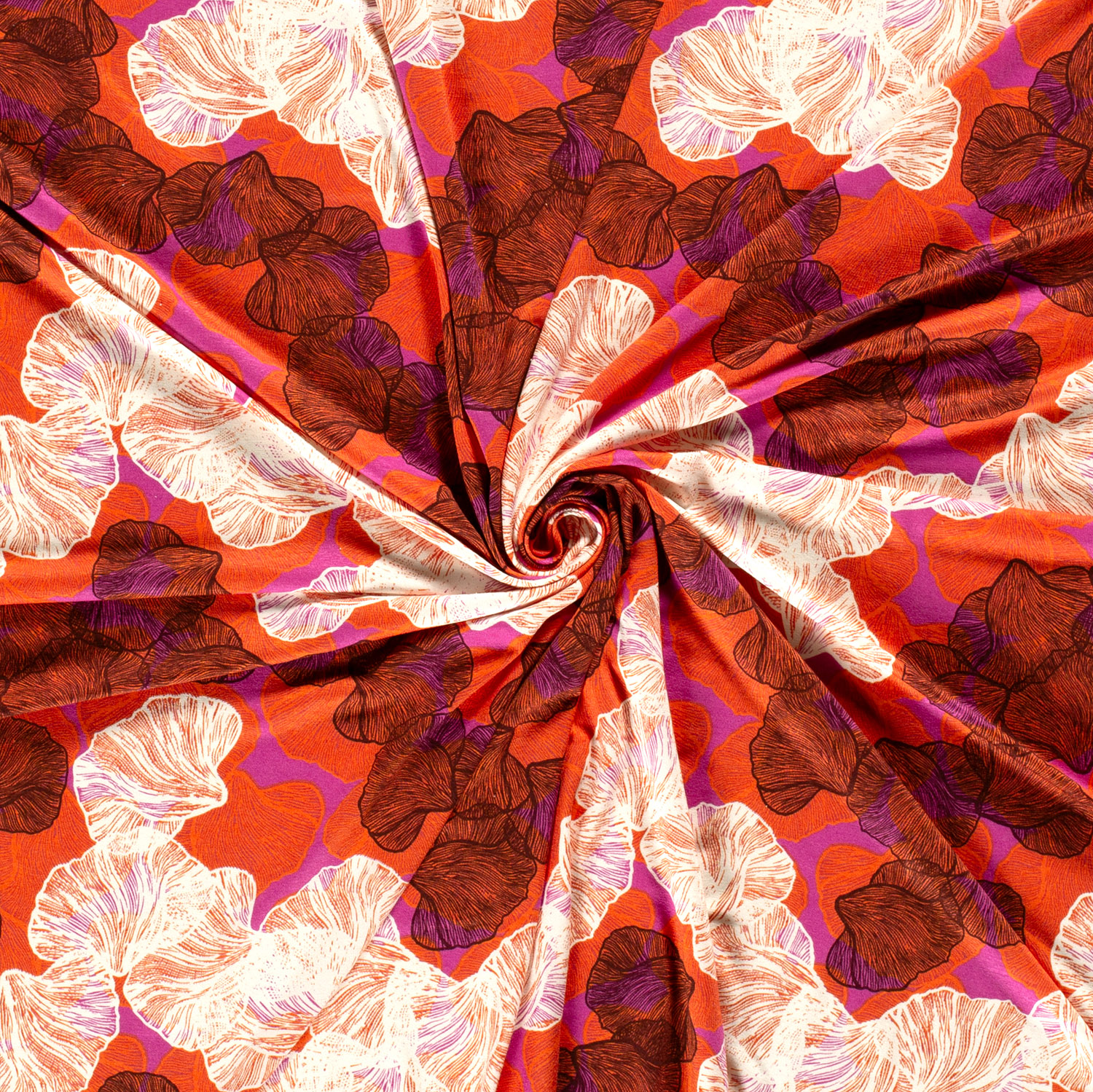 Tack vare sitt flödande fall smiter denna jersey fint mot kroppen och skapar en vacker silhuett – perfekt för luftiga klänningar, toppar, kjolar, jumpsuits eller vida byxor. Även sjalar, lätta cardigans eller bekväma hemmakläder får med detta mönster en fräsch, färgstark look.