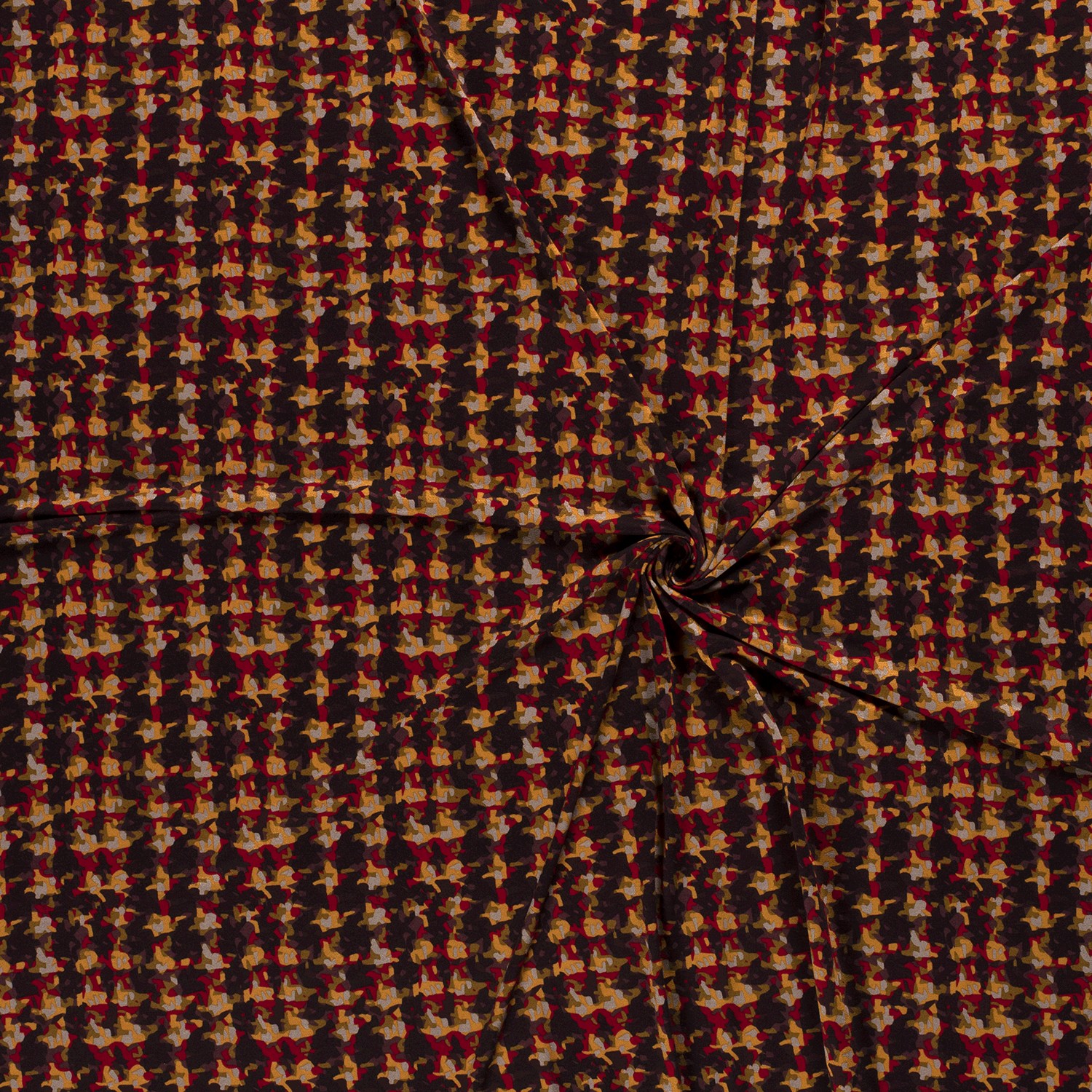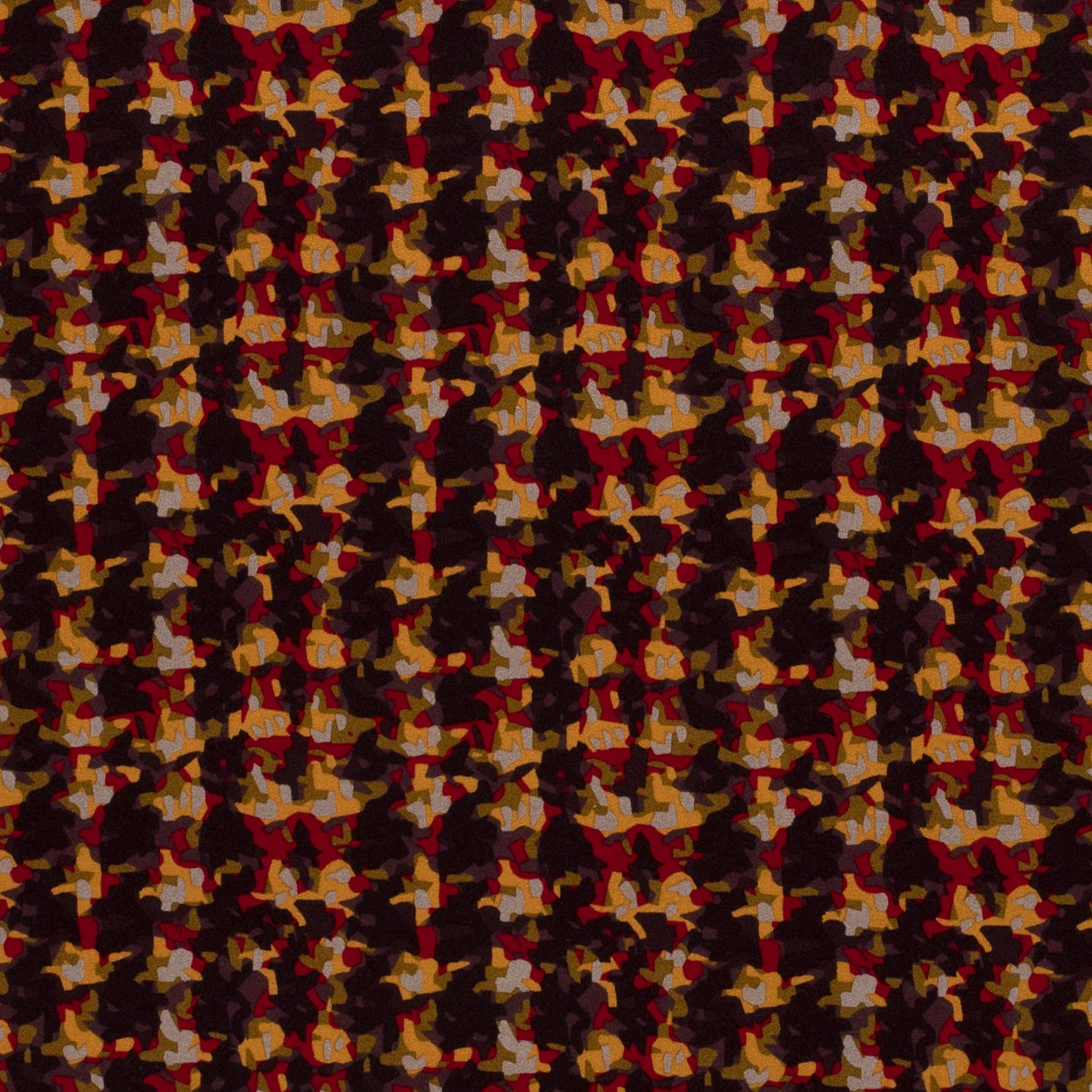 Viskosjersey Retro Mönster Röd/Senap/Ålbergbär