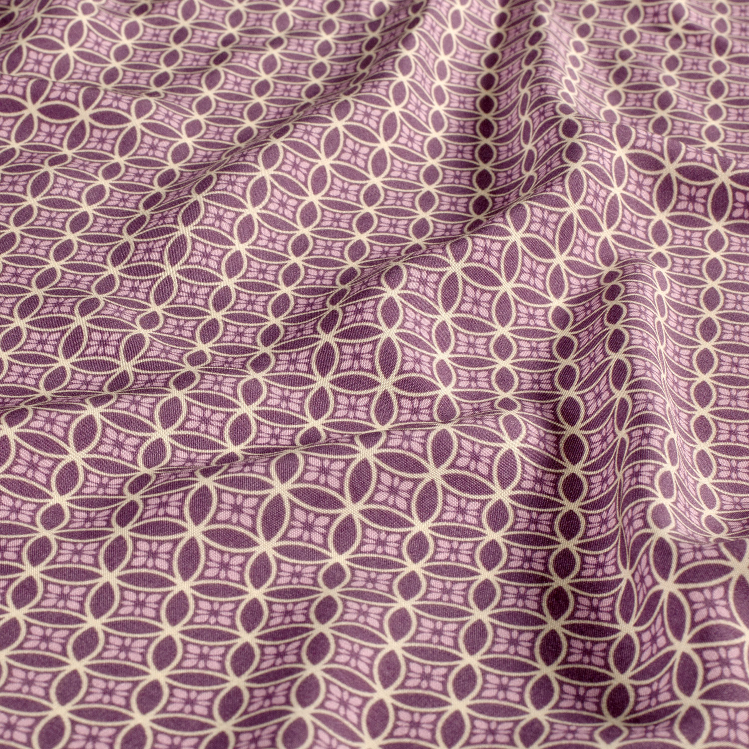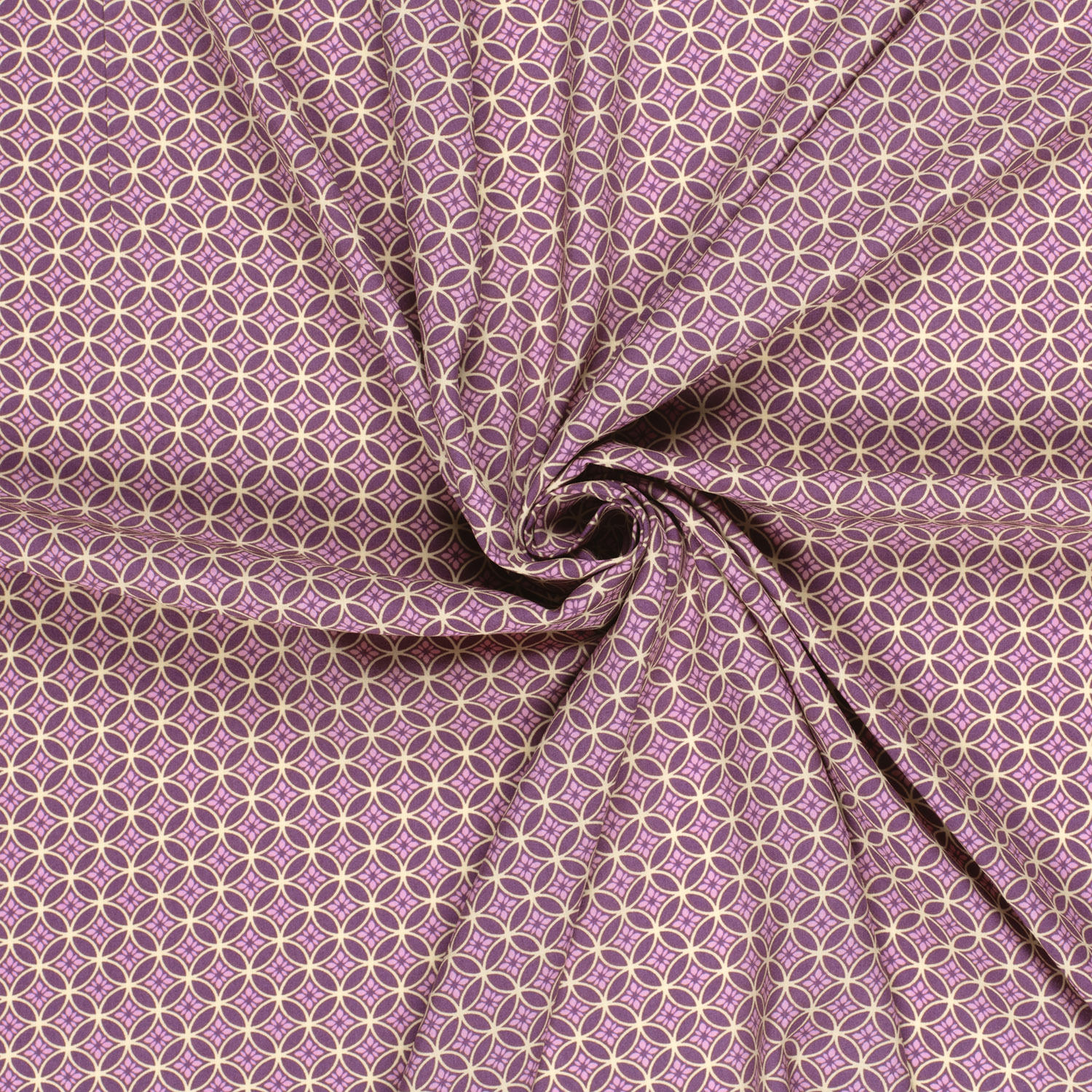 Viskospoplin - Blommor och cirklar i malva