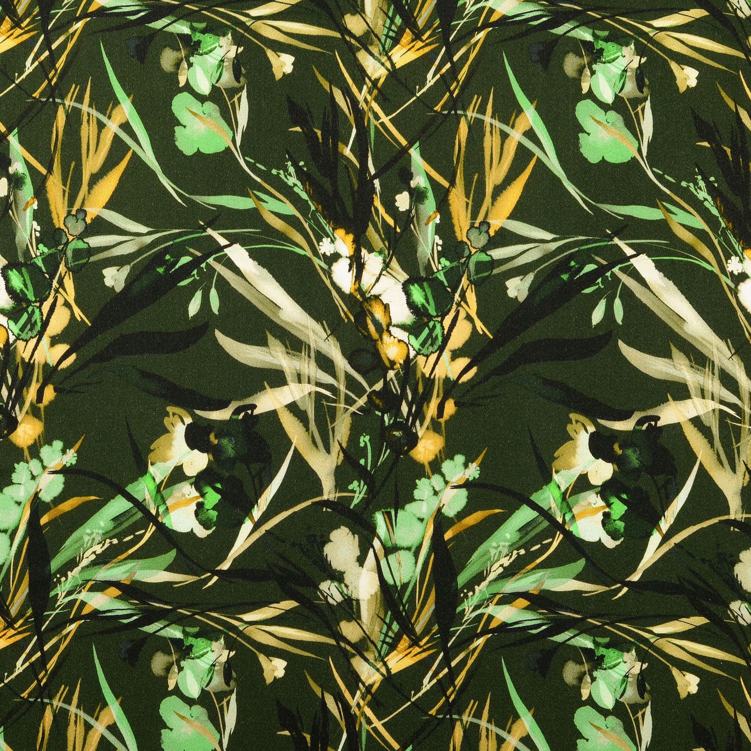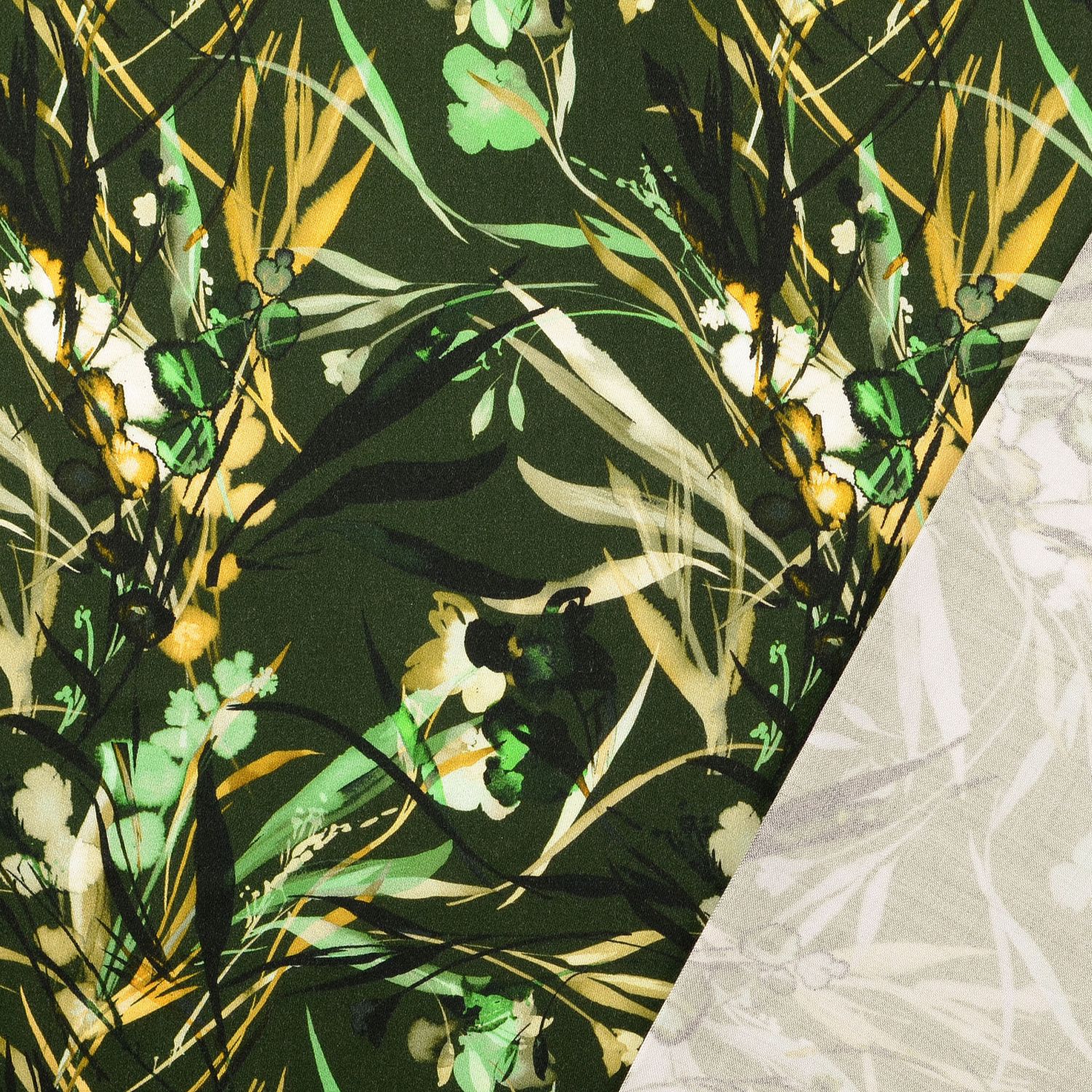 Mjuk glans, mjukt flödande och full av naturlig elegans: denna viskossatin förtrollar med en vacker lövdesign i varma oliv- och gröna nyanser. Fina bladstrukturer i olika nyanser ser ut som handmålade och ger tyget ett levande men ändå lugnt uttryck.